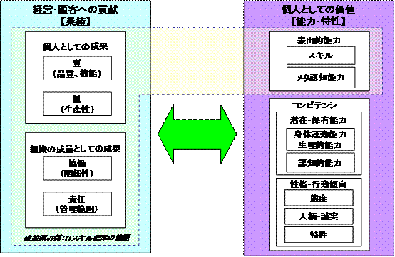 経産省では、ITスキル標準のベースとなる、人材能力の捉え方の構造を次の図で示しています。
