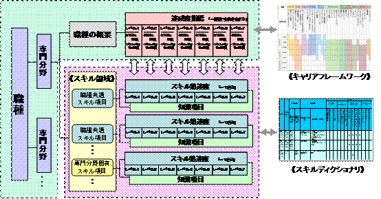 ITスキル標準を構成するドキュメントの要素の関係を図にしたものです。